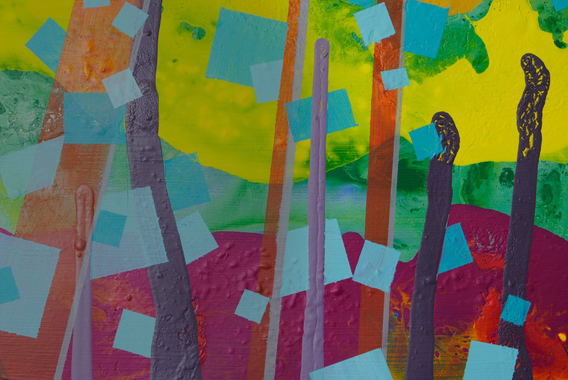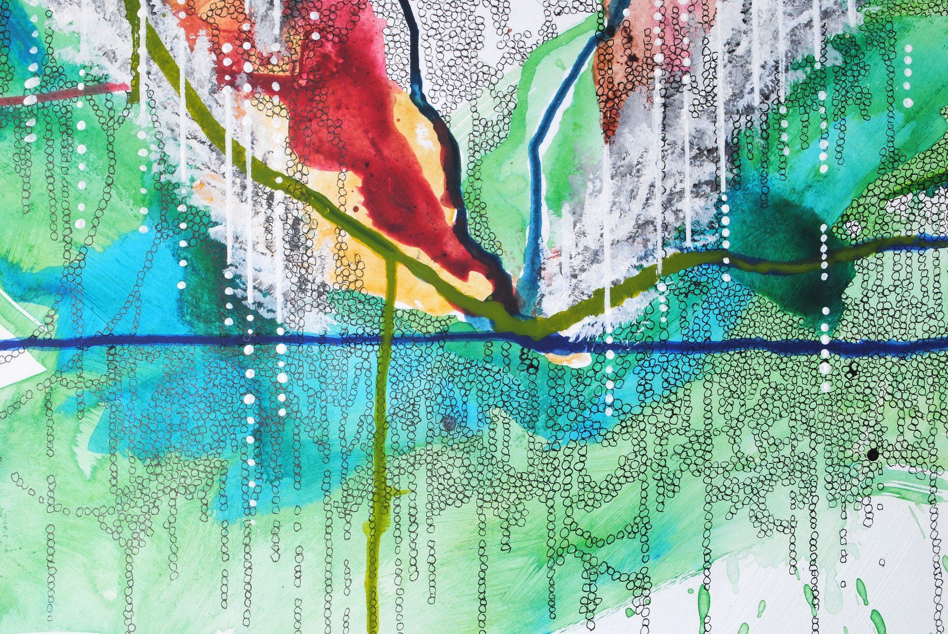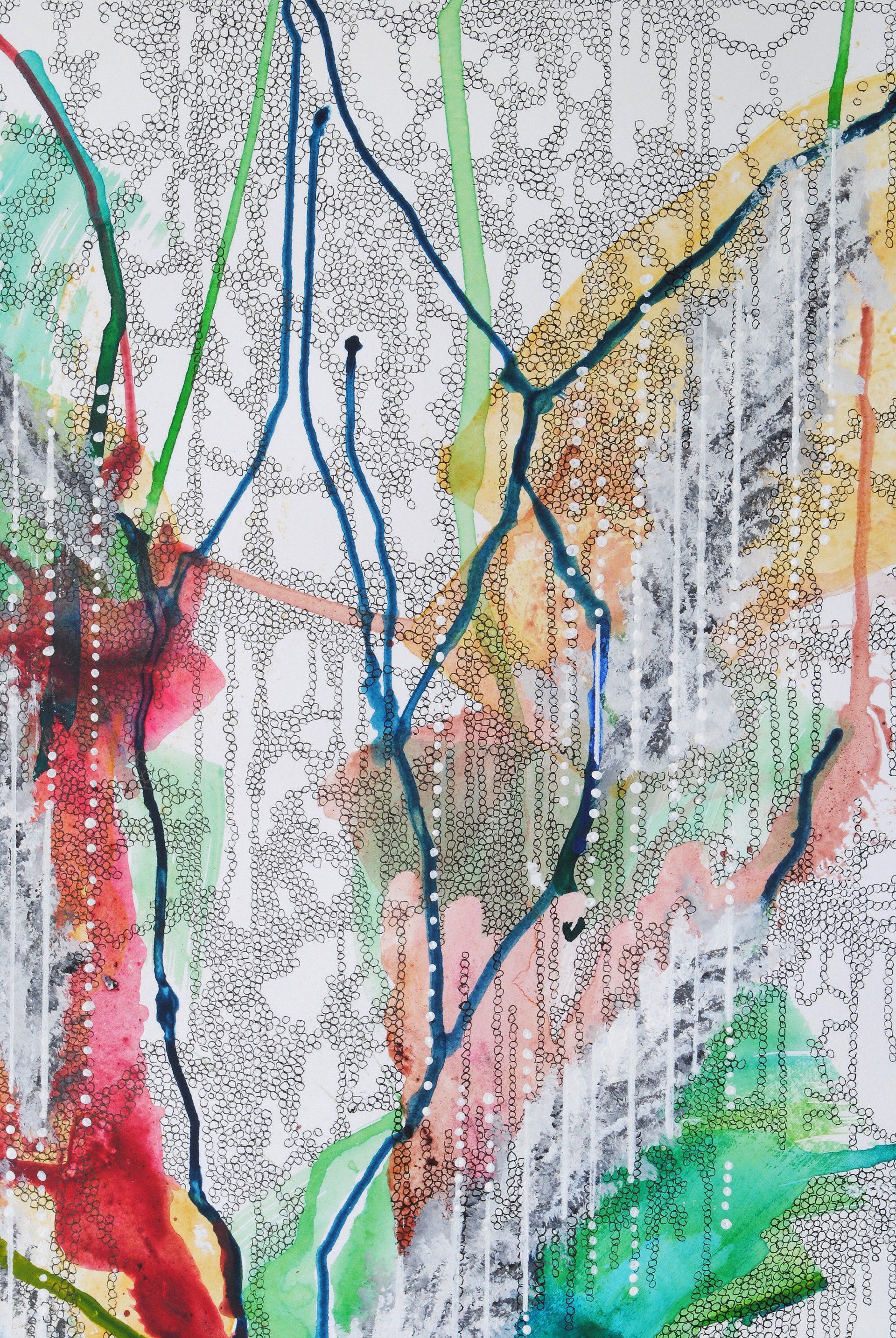 Acryl und bemalte Papierstreifen