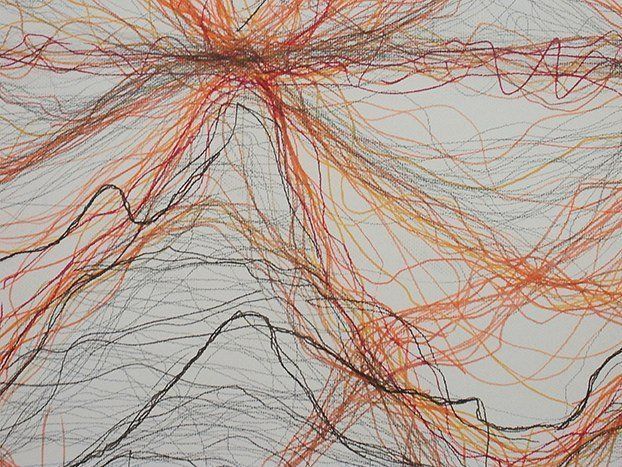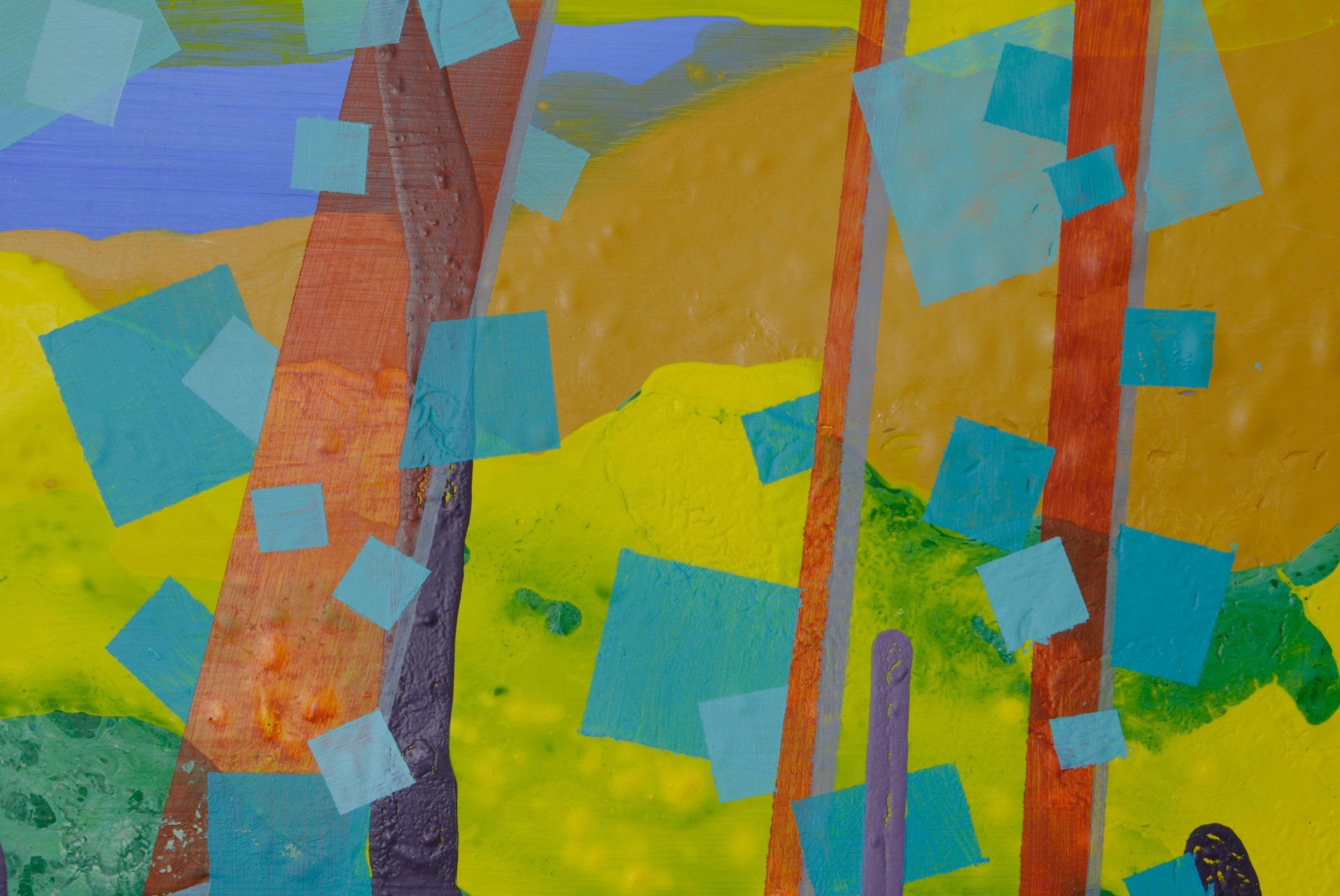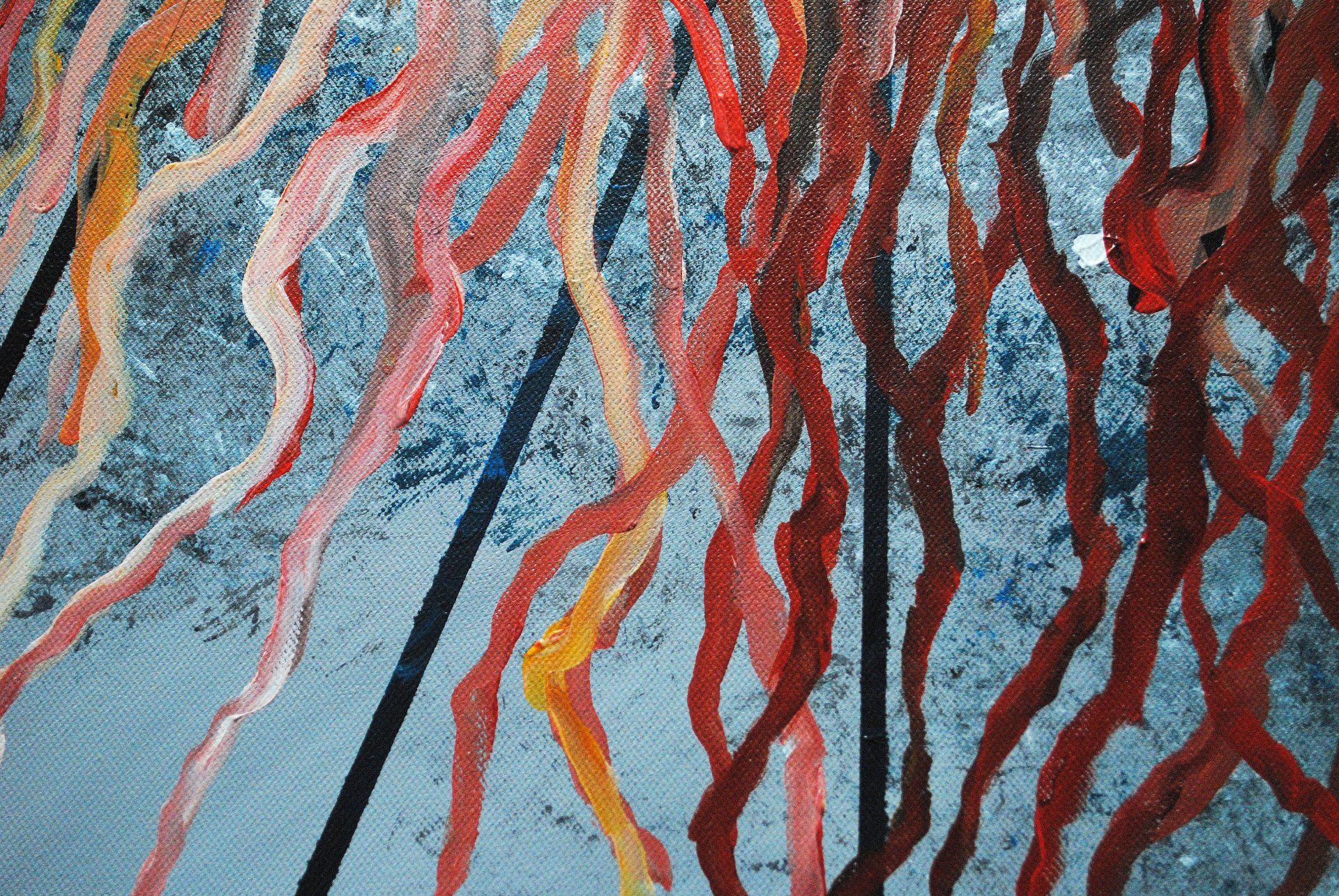 Acryl und bemalte Papierstreifen